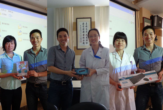 讲座最后,依然是我们最激动人心的抽奖环节。每一位到场的老师都获得一副精致的中原生物扑克牌,此外,我们还现场抽取了无线键鼠、无线音乐耳机和迷你键盘。