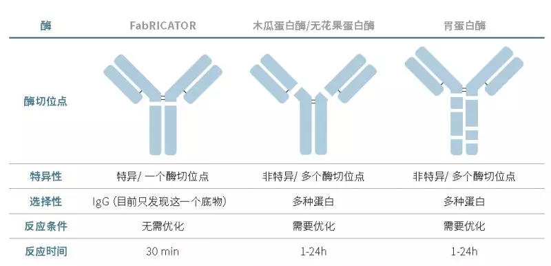 FabRICATOR蛋白酶有更高的特异性和IgG选择性,反应条件简单可兼容多种不同pH值的缓冲液,并且能明显缩短反应时长。