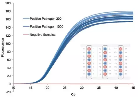 图5. MagNA Pure 24提取的核酸经过qPCR,Cp 值相对较低,这表明我们的核酸产量较高