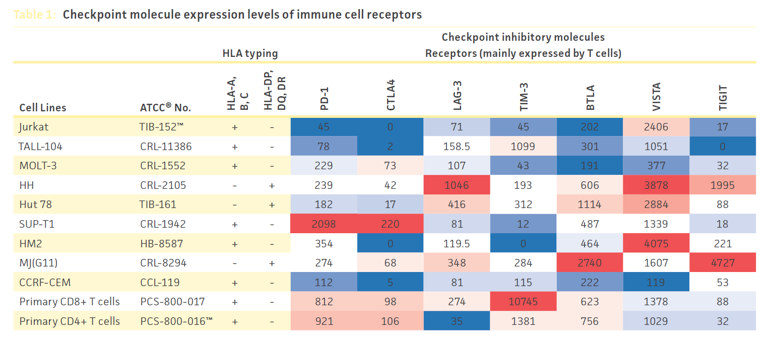 ATCC免疫肿瘤细胞的免疫检查点图谱