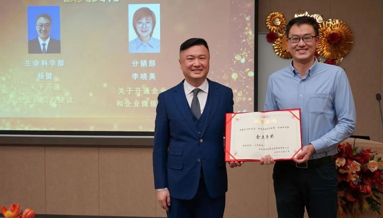 中源公司非常重视来自基层的每一个声音,公司的发展离不开员工们的思想涌动和创新思维。为鼓励每一位中源人积极地参与到公司发展建设中,每年公司都设立了“金点子奖项”。2022年度,两位同事并列荣获“金点子奖项”,他们分别是生命科学部杨健及分销部李晓美。