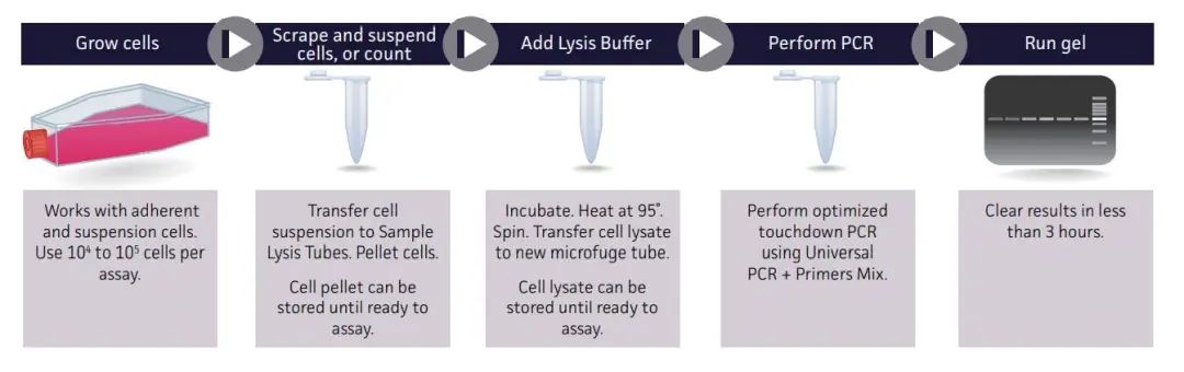 该方法采用针对支原体DNA的引物用PCR检测可疑样本,其中PCR引物通常针对支原体的16S rRNA基因。在凝胶电泳过程中,支原体DNA会显示为特异性条带,以此指示支原体的存在。PCR法可以检测大多数支原体,但谨慎起见最好同时使用另一种检测方法来进行验证。
