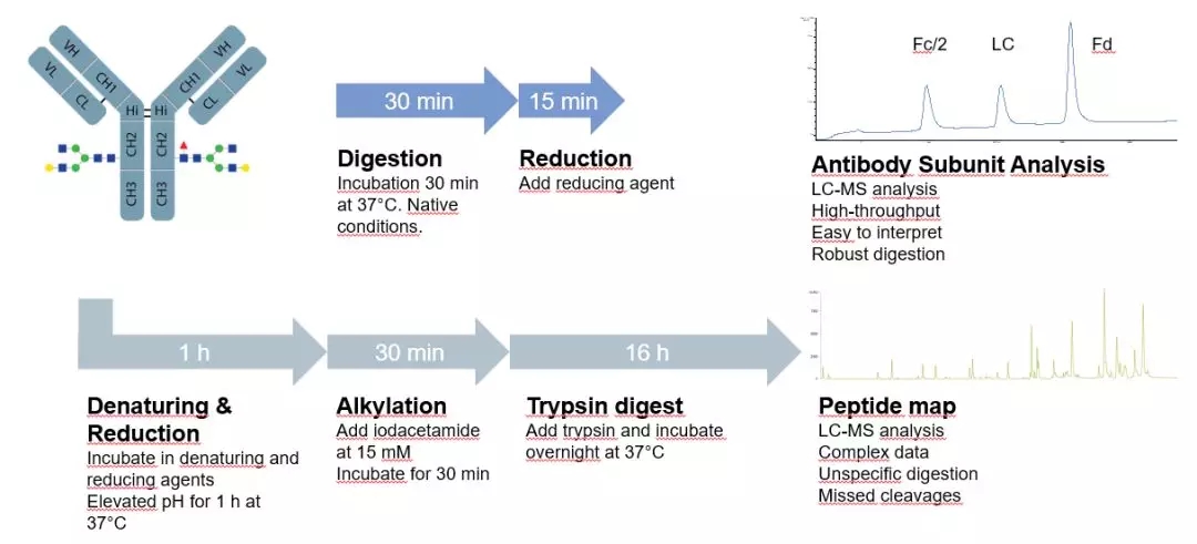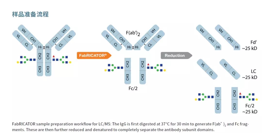 FabRICATOR® (IdeS)is a unique cysteine protease that cleaves IgG at a single amino acid site below the hinge region. The digestion reaction can be completed in only 30 minutes, and no condition optimization is required.