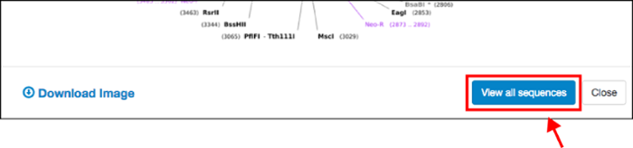 Once you’ve identified a plasmid that you want to learn more about, updates to our sequence analyzer will allow you to dive into the details. Click on the “View all sequences” button to find all available sequence information from Addgene depositors and our own sequencing results: