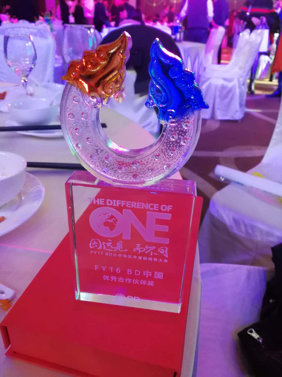 Beijing Zhongyuan Ltd. was invited to participate the BD company FY17 Greater China Annual Dealers Conference in the Guiyang City on February 22, 2017, and was awarded the "FY16 BD China Outstanding Partner Award."