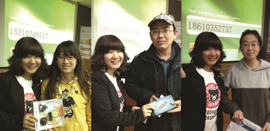 讲座最后,依然是我们最激动人心的抽奖环节。每一位到场的老师和同学都获得一副精致的中原生物扑克牌,此外,我们还现场抽取了迷你键鼠,无线音乐耳机和无线键鼠套装三个大奖。恭喜如下获得大奖的三位幸运儿: