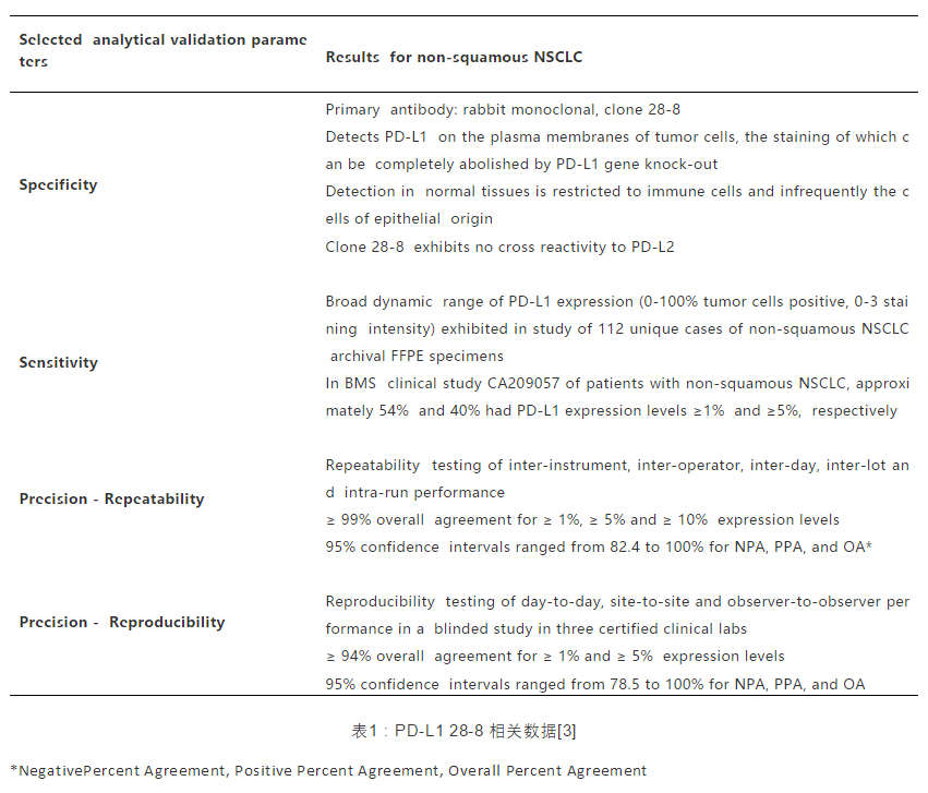 如表1所示,PD-L1[28-8]作为PD抑制剂的补充诊断抗体,已经获得了FDA批准用于NSCLC和黑色素瘤患者的临床诊断[3],具有特异性(经KO验证)、具有高灵敏性(兔单抗RabMab)、高重复性(重组抗体)等优点。