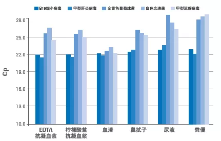 图1. 不同样本类型的目标核酸提取结果